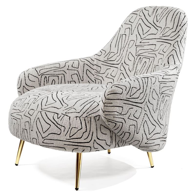 Кресло мягкое с принтом на золотистых ножках Onlooker Черно-белый Золотой в Липецке | Loft Concept