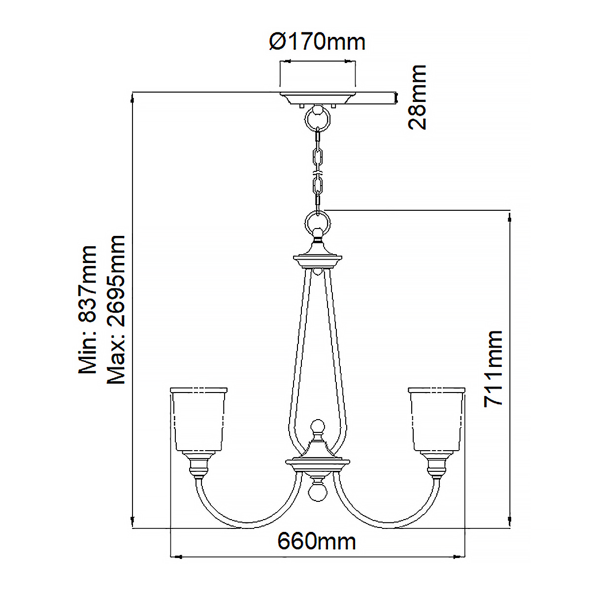 • Размер 3 лампы - мин. длина - 71.7 см, макс. длина - 257.5 см. (Д56 х В59.1 см) Вес 4.64 кг