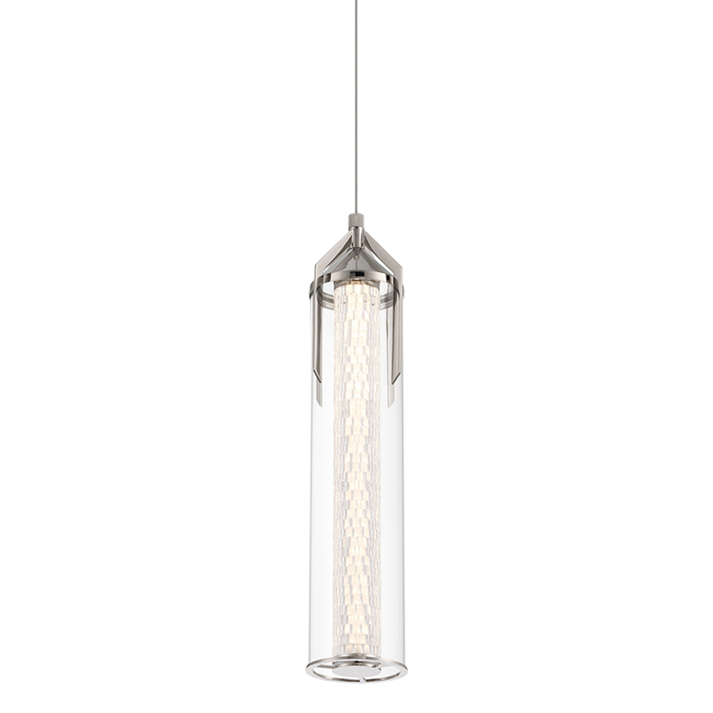 Подвесной светильник хромированного цвета с прозрачным цилиндрическим стеклянным плафоном Eurofase