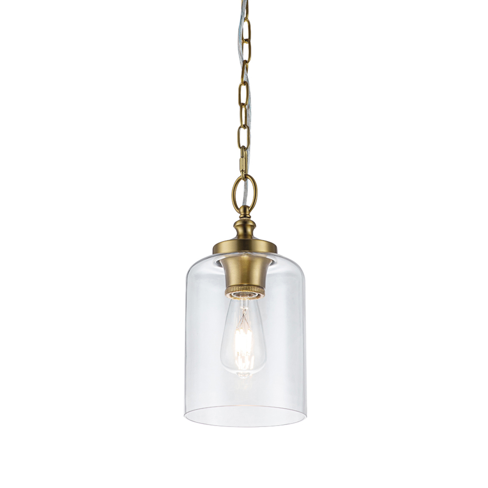 Подвесной светильник латунного цвета с прозрачным стеклянным плафоном Feiss Прозрачное Стекло Латунь в Липецке | Loft Concept