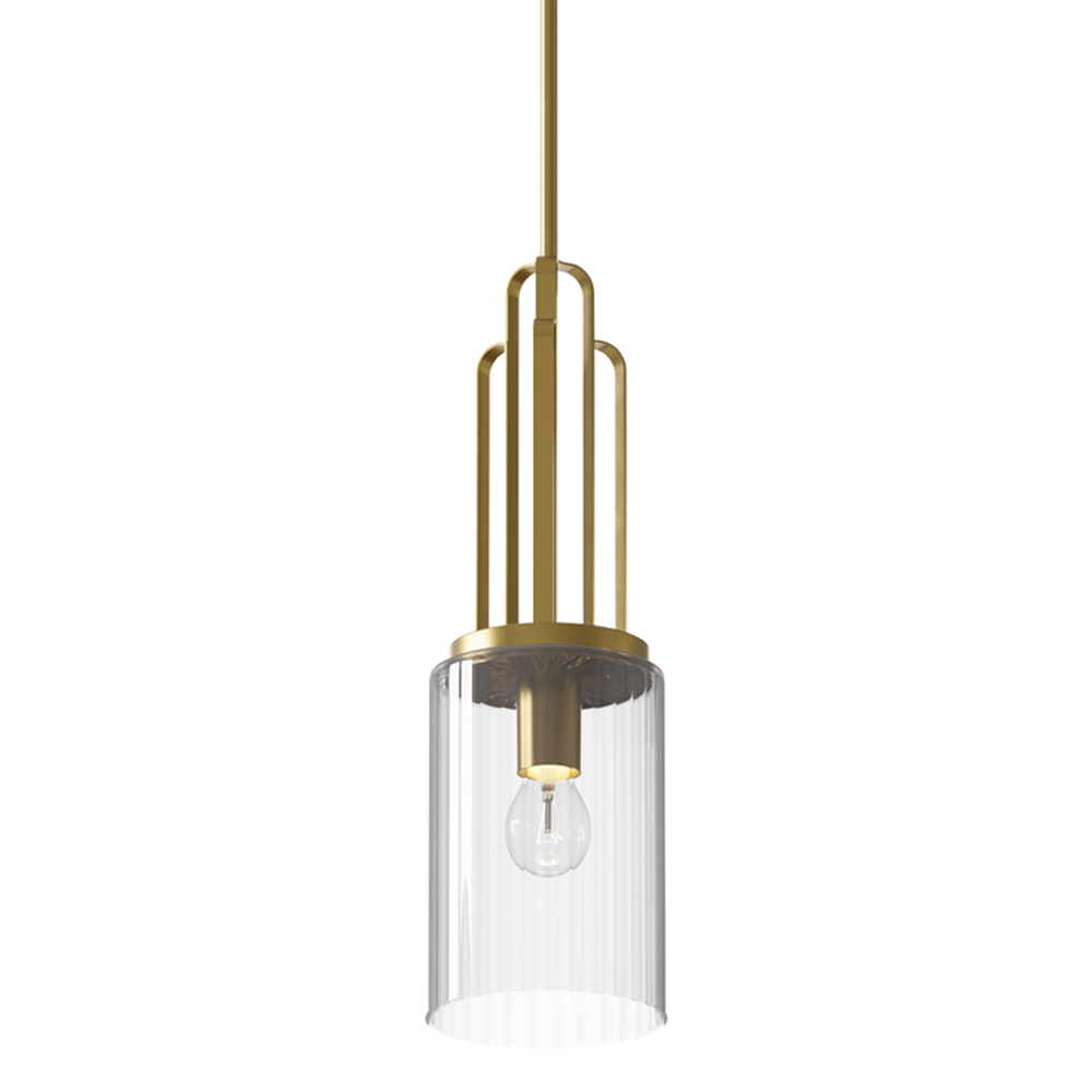 Подвесной светильник с прозрачным рифленым цилиндрическим плафоном Kichler Латунь Прозрачное Стекло Никель в Липецке | Loft Concept