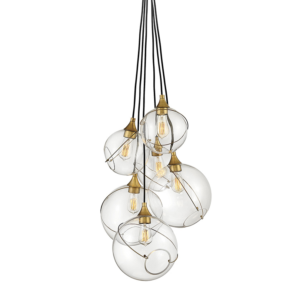 Подвесной светильник с шестью прозрачными стеклянными шарообразными плафонами Hinkley Латунь Прозрачное Стекло в Липецке | Loft Concept