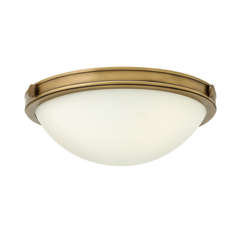 Потолочный светильник цвета латунь с полусферическим матовым белым плафоном Hinkley